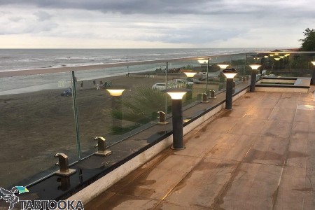 طراحی واجرای سایبان بارانگیرفریم لس شیشه‌ای مدل هلالی