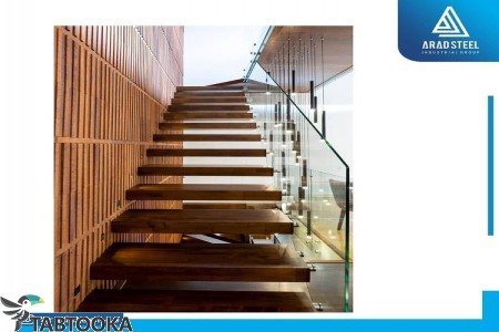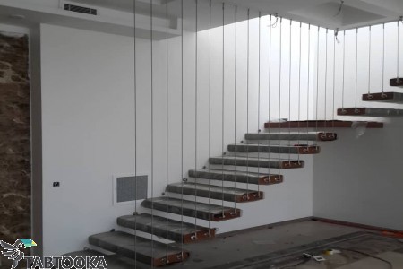 طراحی واجرای پله معلق چوبی با هندریل کابلی