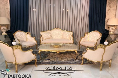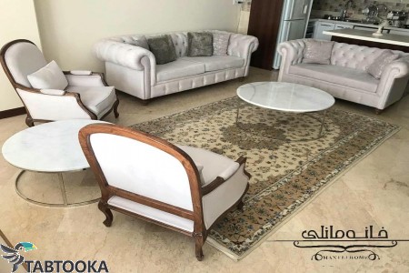 کاناپه سه نفره کاناپه دو نفره دو عدد صندلی تکی کوئین میز دوتیکه سنگ و فلز