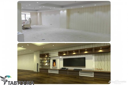 طراحی ساخت و اجرا بازسازی ساختمان کابینت کمد دیواری وفضای تی وی سقف کناف