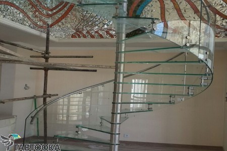 طراحی واجرای پله حول محور مدرن و هندریل شیشهای