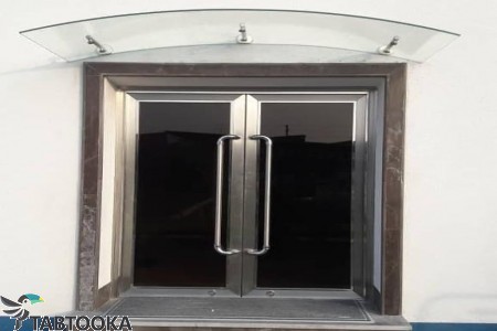طراحی واجرای سایبان بارانگیرفریم لس شیشهای مدل هلالی